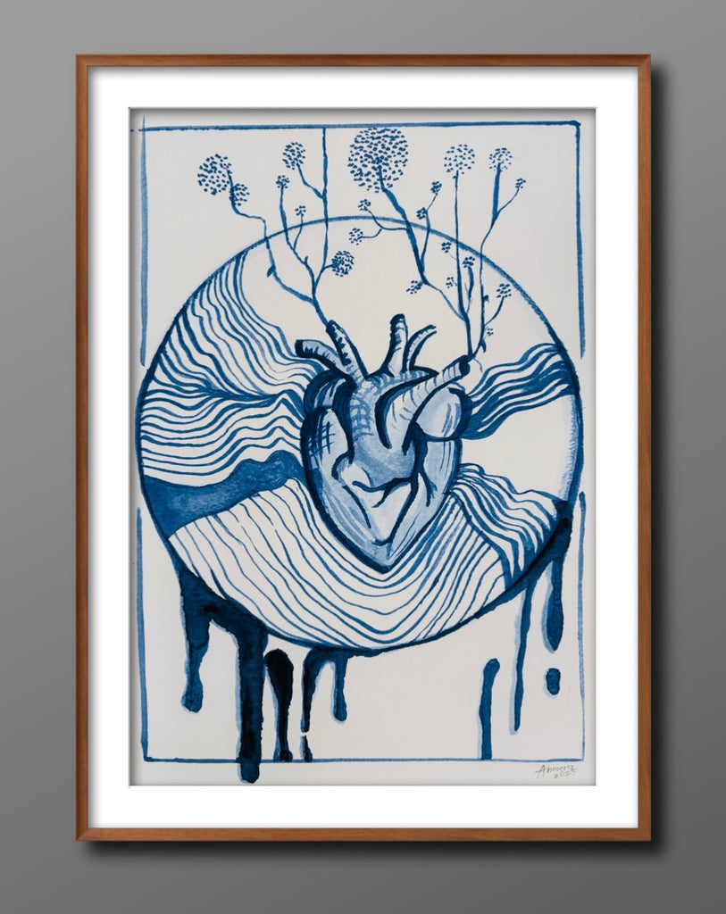 This artwork was the first one made of the Delft Story collection and a lot of heart went into it, no pun intended. This artwork is an expression of how we open up our hearts and where it finds safety and sometimes we find it bleeding.